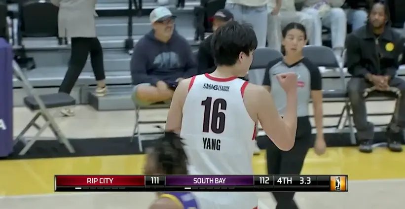 杨瀚森已经在G联赛打了2场比赛——一场11投4中拿到8分13篮板4助攻1抢断1盖帽,另一场就是今天轰下21分9篮板3盖帽又填满数据栏。