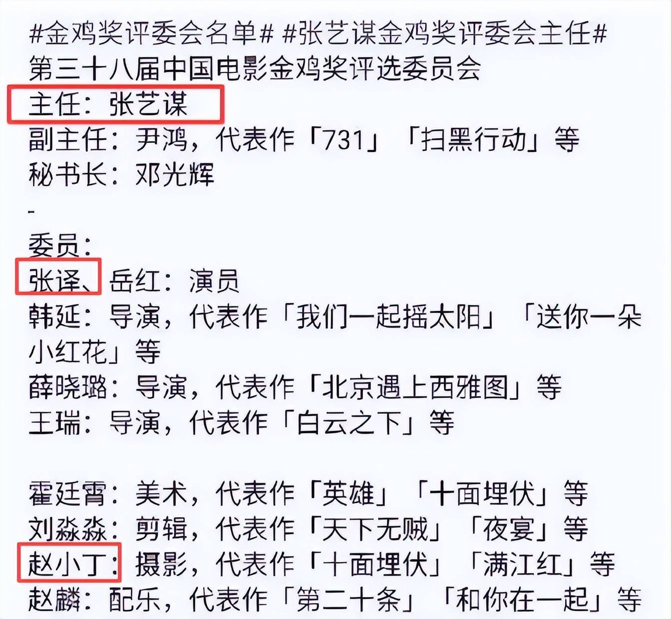 毕竟,张艺谋压根没有必要去搞暗箱操作,刻意捧谁,为新电影“镀金”,以他的地位,只要想合作,也没有哪位金鸡影帝、影后会拒绝,所以何必这么大费周章?